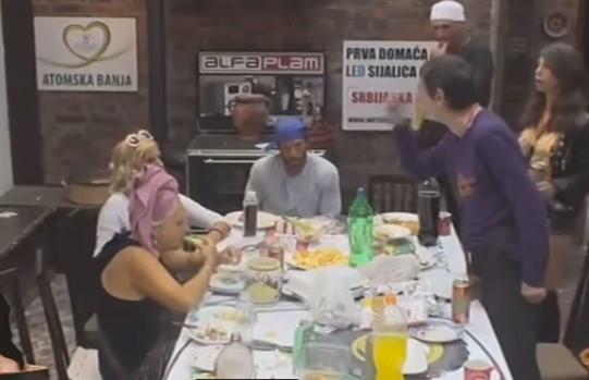 Lepi Mića, pošto je ispolivao mlekom i vodom, tokom rođendanske žurke Nikole Lakića, pljunuo je posred lica Marinu Perazić. U njihov sukob uključila se i Jelena Golubović, što je dodatno iznerviralo već prilično besnog pevača.