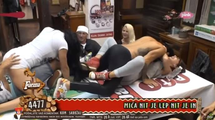 Goga Aleksić, Dušica Grabović, Nikola Lakić i Filip Đukić dobili su za zadatak da simuliraju grupni seks pred svima. Popeli su se na sto pa je Goga završila u strasnom klinču sa Filipom, a Dušica uzjahala Nikolu.