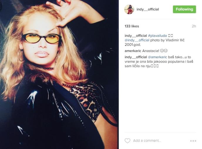 Pevačica je na svom Instagram profilu objavila sliku iz 2001. godine kada je imala plavu kosu. Njeni pratioci su su primetili da Indi na objavljenoj slici podseća na američku pevačicu Anstasiju.