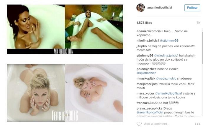 Fotografiju poređenja kadrova iz jednog i drugog spota postavila je na svoj Instagram i to uz komentar: "I tako...Samo mi kopiramo..."
