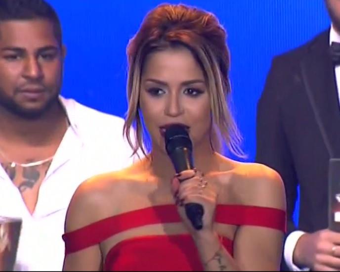 Pevačica je sa završnicu takmičenja izabrala atraktivnu crvenu haljinu koja je isticala njenu figuru, ali otkrila i njene grudi.