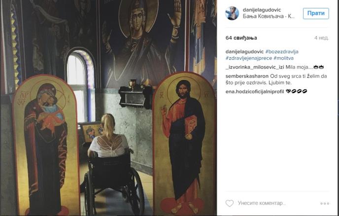 "Pošto ni posle više od tri meseca užasnih bolova, ležanja u bolnici i banji, tone lekova i injekcija moje stanje nije bolje, juče sam bila na VMA i želim da obavestim sve Vas koji mi pišete i molite se za moje zdravlje da ću u utorak operisati kičmu.