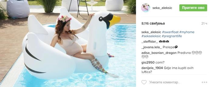 Seka Aleksić, koja je u sedmom mesecu trudnoće, svakodnevno postavlja fotografije što sa svojih nastupa, što svog trudničkog stomaka.