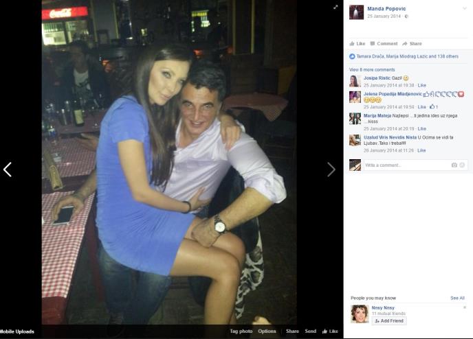 Takođe, Manda je veliku pažnju srpskih medija privukla kada je u jednom hotelu na crnogorskom primorju fizički nasrnula na pevačicu Anu Nikolić, koja je bila u vezi sa kontroverznim biznismenom.