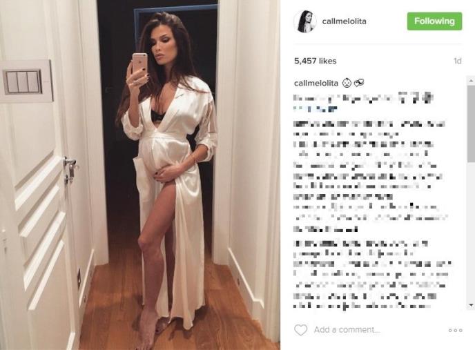 Objavila je fotografiju na kojoj pokazuje dekolte i trudnički stomak i to pozirajući obučena u seksi negližeu i ogrtaču.