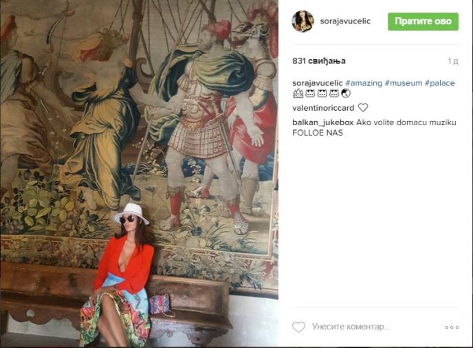 Soraja Vučelić i ovoga puta potrudila se da skrene pažnju na svoje grudi i umetnička dela ispred kojih se fotografisala stavi u drugi plan.