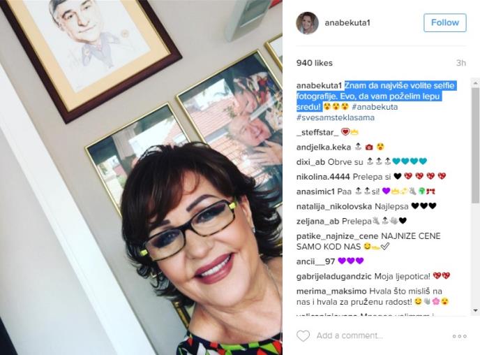 "Znam da najviše volite selfi fotografije. Evo, da vam poželim lepu sredu", napisala je Ana.