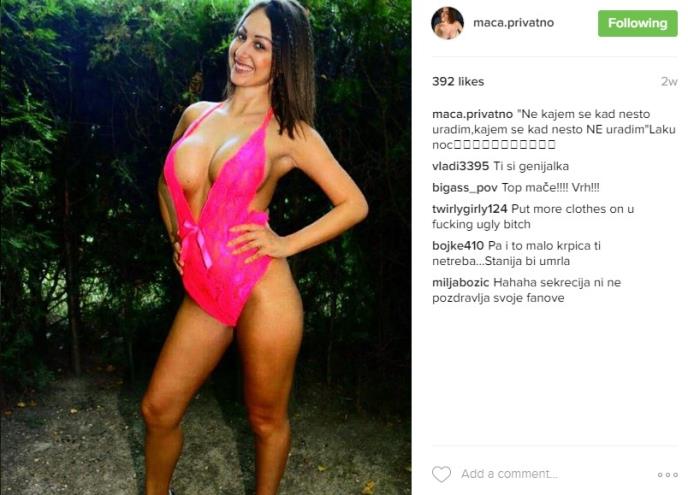 Maca je objavila niz provokativnih fotki ali najviše pažnje i komentara izazvala je slika na kojoj Diskrecija pozira bez gaćica u svojoj omiljenoj pozi, a maštom je dočarala kako izgleda tokom seksa.