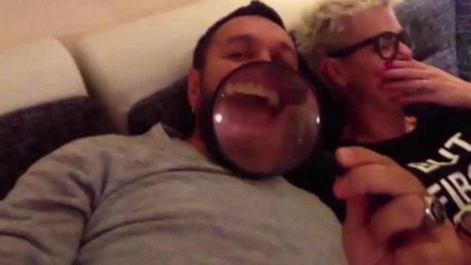 Na snimku su Igor i pevačica Tijana Dapčević, koji su uz pomoć lupe pokušali da naprave efekat sličan onom koji postoji na aplikaciji "Snapchat".