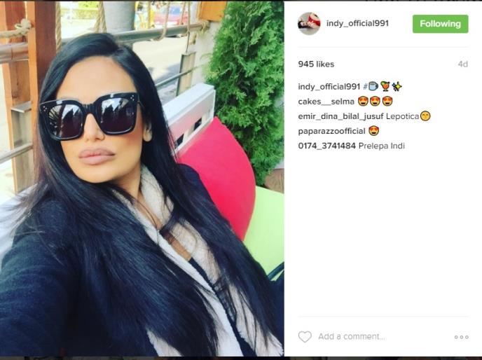"Hvala ti, bože, što sam jedna od najlepših žena na Balkanu", pohvalila se Aradinovićeva, u čemu su je pojedini fanovi podržali, a drugi su njenu narcisoidnost iskritikovali, nakon čega se Indi upustila u svađu s njima.