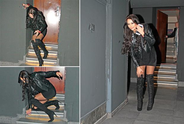 Pevačica je nakon revije frizura Peđe Božića, na kojoj je bila model, krenula da izađe iz kluba kako bi dečku Nemanji Buhi ispričala kako se snašla kao manekenka. Dok je silazila niz stepenice na visokim štiklama, iskrivila je nogu i pala. Osim što je osetila bol u zglobu, povredila je već povređeno koleno.