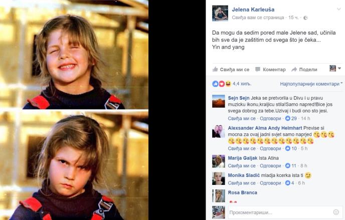 "Da mogu da sedim pored male Jelene sad, učinila bih sve da je zaštitim od svega što je čeka...Yin and yang", napisala je pevačica uz fotografiju.