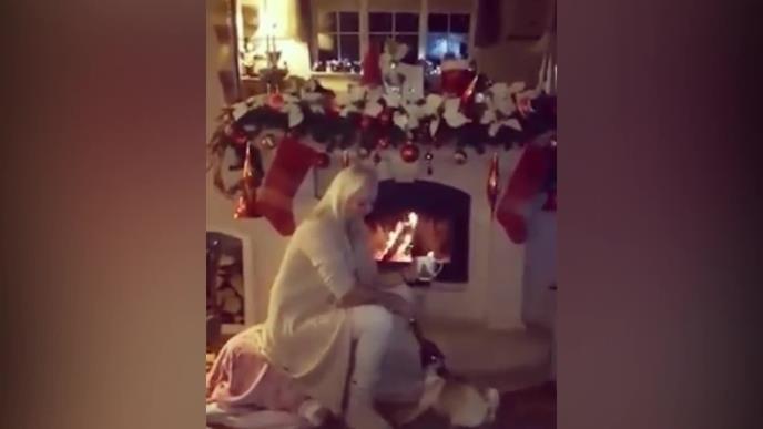 "Praznici nam stižu", napisala je pevačica, a u pozadini se čuje pesma "Ja nemam drugi dom", Brena uživa u igri sa ljubimcem pored kamina.