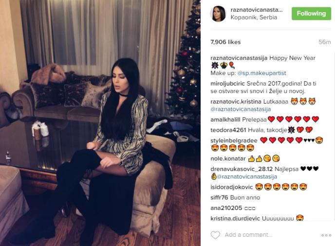 Mlada Ražnatovićeva, koja skoro svakodnevno objavljuje fotografije na Instagramu, postavila je fotografiju na kojoj se sprema za izlazak uz čestitke za srećnu Novu godinu.