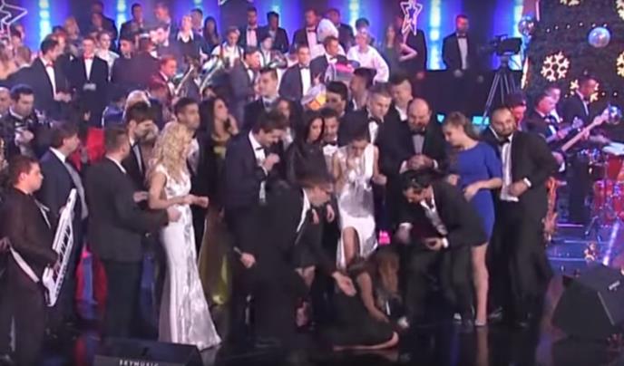 Pinkova zvezda Maja Milošević okliznula se i pala na snimanju novogodišnjeg programa, a kolege su joj pritekle upomoć.