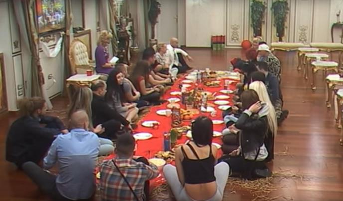 Učesnici rijalitija su se okupili u dnevnoj sobi, Vesna Rivas je održala govor, a potom su se ponosno pohvalili badnjakom.