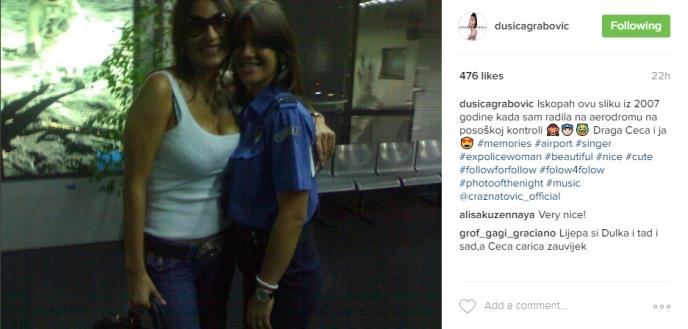 "Iskopah ovu sliku iz 2007. godine kada sam radila na aerodromu na pasoškoj kontroli. Draga Ceca i ja", napisala je pevačica.