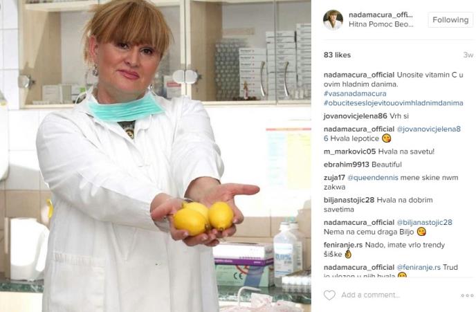 Najpopularnija doktorka u Srbiji vrlo je aktivna na društvenoj mreži Instagram, gde svakodnevo savetuje pratioce kako da se obuku i zaštite od prehlade, ali ume i da ih iznenadi zanimljivim fotografijama.