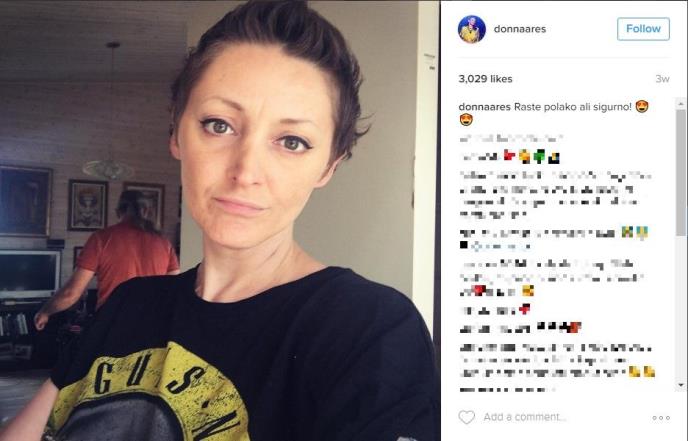 "Prva sedmica podnošljiva, druga loša, treća najbolja. Ipak, uspela sam potpuno oživeti, mučnine i povraćanje su glavne smetnje, umor, loša krvna slika i imunitet zbog čega izbegavam velike grupe ljudi, 3 kilograma sam izgubila, pa vratila, sad samo jedem i spremam sam za drugu hemioterapiju za par dana", napisala je Dona. Pratioci u fanovi su joj uputili reči podrške.