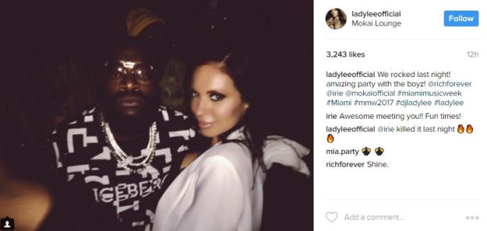 Mega rep zvezda Rik Ros viđen je u utorak uveče u čuvenom klubu Mookai u Majamiju u kojem je otpevao pesmu za devojku koja mu se veoma dopada, ali to nije njegova zemljakinja Niki Minaž već Novosađanka Lidija Popović, poznatija pod scenskim imenom Lejdi Li!