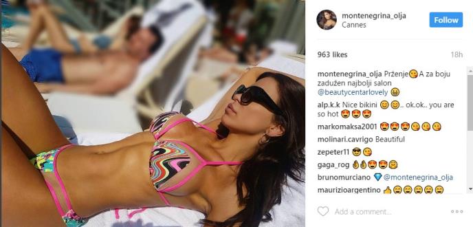 Ona je na svoj Instagram profil okačila fotografiju iz Monte Karla na kojoj je potpuno gola. Olja se slikala na terasi hotela u kojem je odsela, bez ičega na sebi osim belog peškira kojim je pokrila intimne delove.