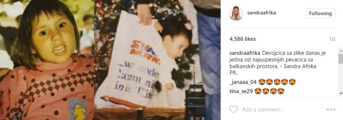 "Devojčica sa slike danas je jedna od najuspešnijih pevačica sa balkanskih prostora. - Sandra Afrika PR", napisala je ona na društvenim mrežama.