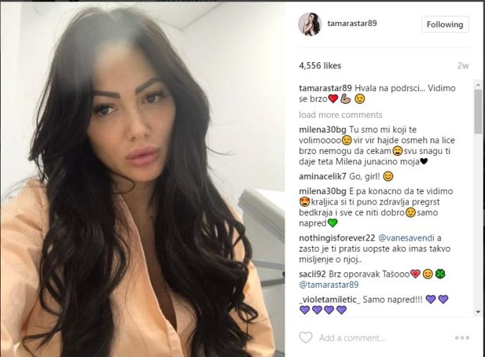 Duže od mesec dana svi pomno prate vesti vezane za zdravstveno stanje Tamare Đurić, koja je preživela pravi pakao nakon što je akvafilerom uvećala zadnjicu. Nedeljama se uz pomoć domaćih, ali i inostranih stručnjaka lečila na Vojnomedicinskoj akademiji, a onda je uzela otpusnu listu i prebacila se na privatnu kliniku.