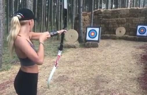 Voditeljka rijalitija uzela je luk i strelu u ruke i gađala metu, a može se reći da se dobro snalazi.