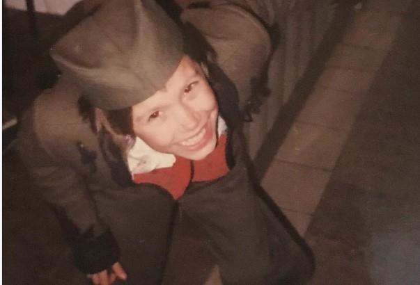Mala Bojana je sa osmehom na licu pozirala u vojničkoj uniformi sve sa šapkom na glavi.