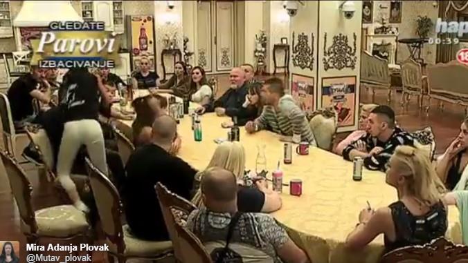 Dok su svi učesnici sedeli za stolom izbila je svađa između Teodore i Ivana, a ona je ustala i počela iz sve snage da ga udara i šutira.