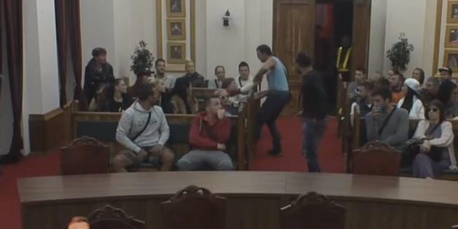Istog trenutka, bivši učesnik emisije ''DNK'', skočio je na Boru Santanu, pa se u sudnici podigla velika gužva.