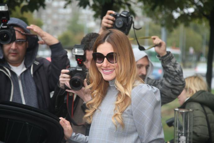 Danas je popularni pevač došao po suprugu i bliznakinje u pratnji sina Koste. Voditeljka je iz privatne klinike izašla vidno raspoložena i nasmejana u haljini iznad kolena.