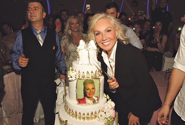 Najvećoj zvezdi bivše Jugoslavije divan dan su prvo čestitali muž Boba Živojinović i sinovi Stefan i Viktor, koji su naterali pevačicu da eksira čašu alkohola. Odmah nakon zdravice doneli su veliku tortu na sprat s Breninim likom i vatrometom kojom su joj mladenci poželeli sreću. Gosti su se okupili oko njih, a Brena je održala kratak govor.