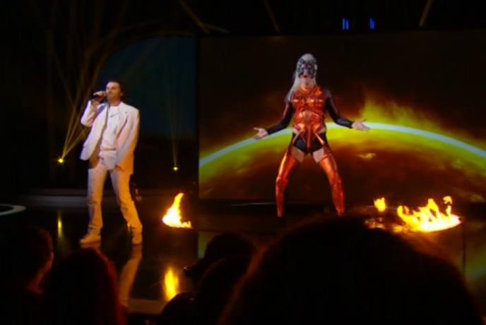 Jelena je pred kraj pesme izašla na scenu i zajedno sa Mirom i Nenadom otpevala pesmu.