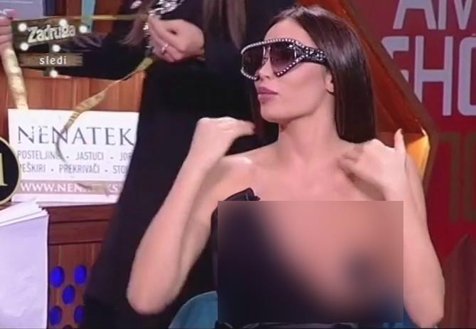 Ostali gosti emisije su se trudili da je ne gledaju čudno, ali svi pogledi su sa razlogom bili usmereni samo u jedno. Ona je na jednoj dojci zaštitila samo bradavicu, dok je sve ostalo bilo "na izvol'te".