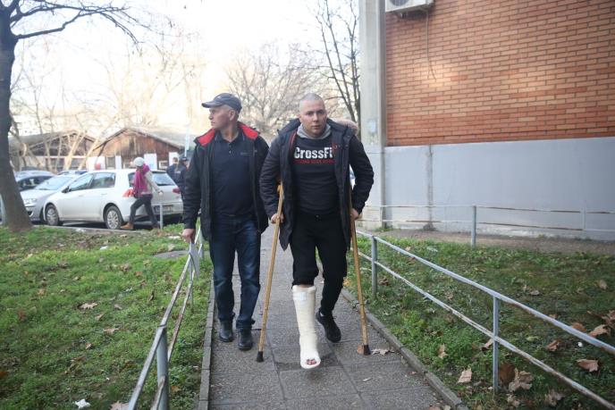 Brendon je u Treći osnovni sud stigao na štakama sa nogom u gipsu, dok su Marinkovića na saslušanje dovezli u marici.