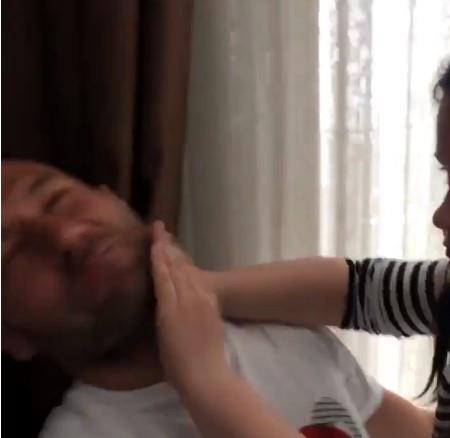 Nika je izgubila i nije podnela poraz, pa je počela da rukama "udara" tatu po licu.