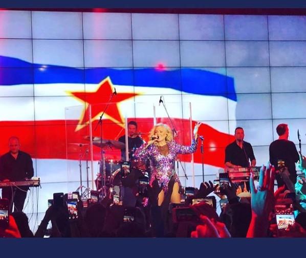 Naime, dok je izvodila svoj hit "Jugoslovenka", pevačici je neko iz publiku dodao zastavu bivše SFRJ koju je ona uzela i počela da maše njom na sveopšte oduševljenje publike.