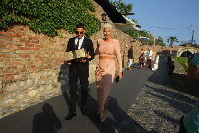 Pevačica je izabrala dugačku suknju "puder" roze boje koju je uparila sa top majicom. Njih dvoje su izazvali veliku pažnju novinara, pa su pozirali na Kalemegdanu.