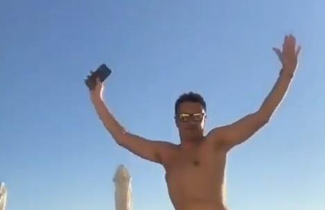 On na novom snimku igra u kupaćem kostimu, a njegovi pokreti nasmejali su sve pratioce.