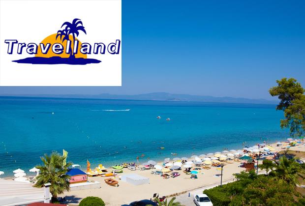 Halkidiki godnama privlači ogroman broj turista, a posetiocima nudi veliki izbor raznovrsnih sadržaja. Iz bogate ponude u letovalištu Hanioti „Travelland“ izdvaja jedan luksuzni hotel iz kategorije četiri zvezdice. Grand Otel raspolaže sopstvenom plažom, bazenom, parking prostorom i nudi izuzetnu uslugu restorana, bara, snack-bara na plaži, a od ostalih sadržaja tu su moderna konferencijska sala, servis za pranje veša, menjačnica, rent-a-car, masaža, punkt sa sportovima na vodi, TV sala, stolovi za stoni tenis i još mnogo toga. Prostrane i klimatizovane sobe, opremljene su po najnovijim standardima i svakom gostu pružaju osećaj sigurnosti i spokoja.