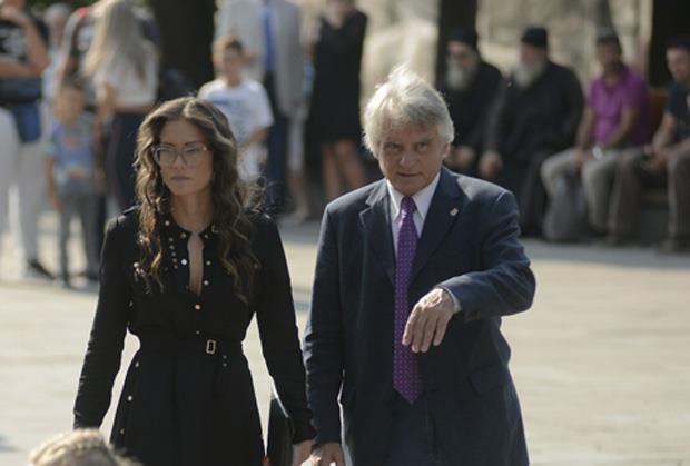Ona je na crkvenu ceremoniju stigla sa decom, svekrom Duletom Savićem i svekrvom Marinom.