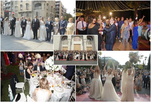 Sudbonosno „da“ pred Bogom izgovorili su biznismenov sin Nebojša i njegova supruga Ksenija i ćerke Nadežda i Danica sa muževima Dejanom Lazarevićem i Nikolom Stoilkovićem, dok je Jelenino venčanje odloženo zbog kašnjenja kumova na ceremoniju.