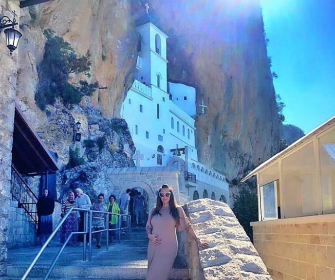 Pevačica, koja sa 15 godina mlađim Urošem Domanovićem čeka sina, nedavno je posetila manastir Ostrog gde se zahvalila što joj je Sveti Vasilije uslišio molitve.