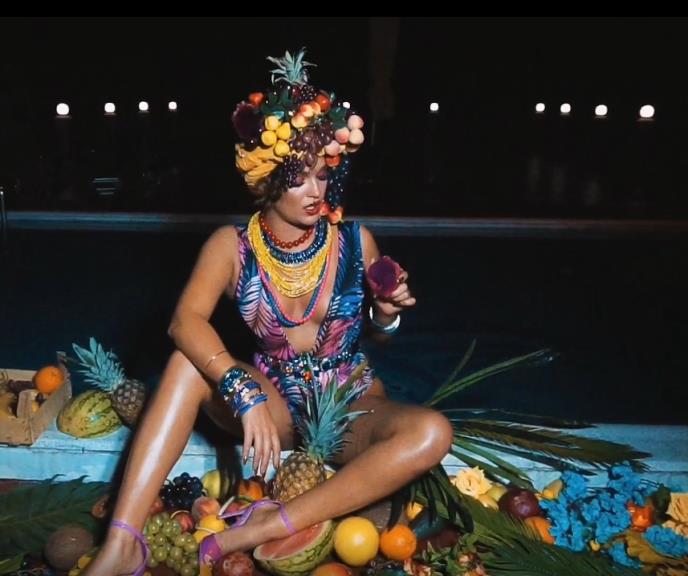 Tamara Milutinović baš zna kako da privuče pažnju! "Zvezda Granda" bila je dovitljiva, pa je za potrebe snimanja spota stavila voćni aranžman na glavu!