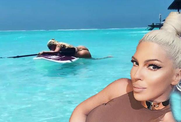 KARLEUŠA U TANGA KUPAĆEM SKLIZNULA SA DASKE U VODU! Pevačica vrištala od smeha, Maldivi goreli gledajući u njeno ZATEGNUTO TELO! (VIDEO)