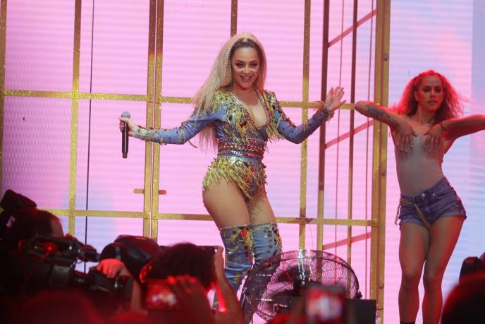 U vrelom izdanju zapalila je scenu čim se pojavila. Za dugo očekivani koncert odabrala je seksepilni bodi sa dugim rukavima i frindžom na grudima i kukovima, čizme preko kolena, a dugu kosu vezala je u visoki rep, dok su joj lokne padale preko ramena.