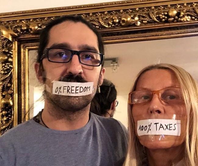 Naime, studenti danima na ulicama Severne Mitrovice protestuju zbog odluke Prištine da na robu iz Srbije uvede taksu od 100 odsto. Kao solidarnost sa njima, Verica i Veljko su usne prelepili trakama na kojima piše sloboda 0 posto, takse 100 odsto.