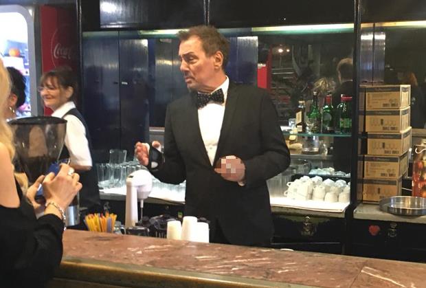 Bio je vidno raspoložen, jer se susreo sa mnogim kolegama i stalno je pravio zezancije na svoj račun. Tako je u jednom momentu pevač postao konobar, jer je upao u šank i počeo da služi piće.