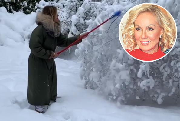 Voditeljka je sneg spremno dočekala i dobro se opremila! Čim je videla da se u njenom dvorištu drveće gotovo savilo od težine snega na granama, ona je obula čizme, obukla debelu jaknu, stavila kapu, šal i rukavice i prionula na posao!